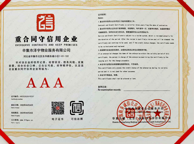 | 企業(yè)信用評價AAA級信用企業(yè) |